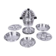 Idli Maker Aluminium Idli-Dhokla Streamer/Maker (18 Idli)(1 Pot, 1 Lid, 4 Idli Plates, 2 Dhokla Plates, 1 Steamer Plate) – Idli Cooker | Idli/Dhokla/Momos Maker Is Made Of Heavy Quality Aluminium with stainless steel Handle