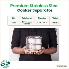Stainless Steel Pressure Cooker Separator 2-tier Compatible with 3 Litres , Premium Quality, 100% Safe, 2 Containers With Lifter Stand, Stainless Steel