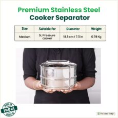 Stainless Steel Pressure Cooker Separator 2-tier Compatible with 5 Litres , Premium Quality, 100% Safe, 2 Containers With Lifter Stand, Stainless Steel