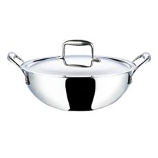 Vinod Platinum Triply Stainless Steel Extra Deep Kadai with Stainless Steel Lid 3.2 litres (24 cm Diameter) Silver (Induction and Gas Stove Friendly)