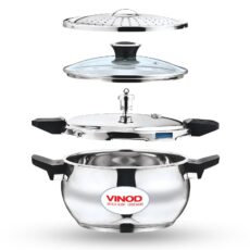 Vinod Magic Stainless Steel Smart 3 in 1 Pressure Cooker 3.5 Litre | 5mm Thick Base | All in One Cooker with Strainer & Glass Lid | Induction and Gas Base | ISI certified | 2 Years Warranty