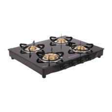Glory 4 Burner Glass Cooktop, Black 8mm Toughened Glass with 2 Years Warranty, Ergonomic Knobs, Stainless Steel Drip Tray, Manual Ignition Gas Stove