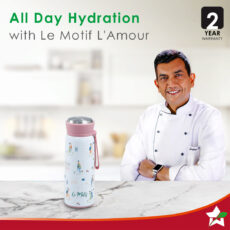 Le Motif L’amour, 420ml, Stainless Steel Double wall Water Bottle, 3D Embossed Design, Spill & Leak Proof, 2 Years Warranty