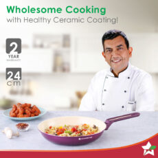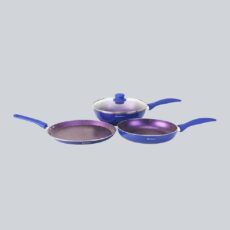 Bellagio Ceramic Non-stick 4 pc Cookware Set, Kadhai with Lid, Fry Pan & Dosa Tawa, Deep Purple, 2 Years Warranty