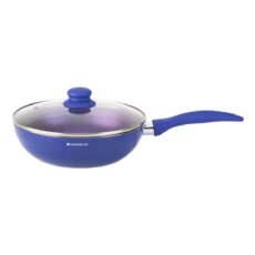 Blueberry Aluminium Non-stick Cookware Set, 4Pc (Wok with Lid, Fry Pan, Dosa Tawa), Induction Bottom, Soft Touch Handle, Pure Grade Aluminium, PFOA Free, 2 Years Warranty, Blue