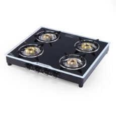 Platinum 4 Burner Manual Glass Cooktop | 6mm Toughened Glass Cooktop | Stainless Steel Drip tray | Anti-Skid Legs | Large Pan support | Manual Ignition | Black steel frame | 2 Year Warranty | Black