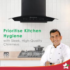Power Curve Wall-Mount Chimney| 1000M3/H | Suction Capacity| 3 Speed Push Control| Low Noise| 60cms |Baffle Filter| Black