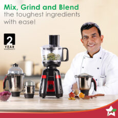 Platinum Food Processor-Mixer-Grinder | 750W Copper Motor | Blades for Slicing, Shredding, Kneading, Juliennes, French-Fries | 4 Jars for Dry/Wet Grinding, Blending | 5 Yr Warranty on Motor