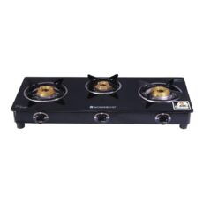 Power 3 Burner Glass Cooktop, Black 6mm Toughened Glass with 1 Year Warranty, Ergonomic Knobs, Tri Pin Brass Burner, Stainless-steel Spill Tray, Manual Ignition