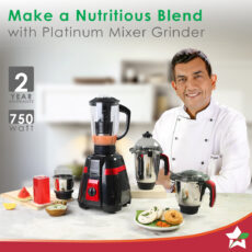 Platinum Mixer Grinder 750W with 4 Stainless Steel Jars And Anti-Rust Stainless Steel Blades, Ergonomic Handles, 5 Years Warranty On Motor, Black & Crimson