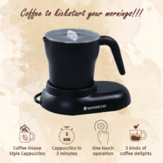 Wonderchef Cuppaccino Coffee Maker 550W | Coffee Machine for Home | Cappuccino from Instant Coffee in 3 Minutes | Professional Grade Froth | Hot Chocolate, Cold Coffee | Induction based brushless movement | 2 Years Warranty | Black
