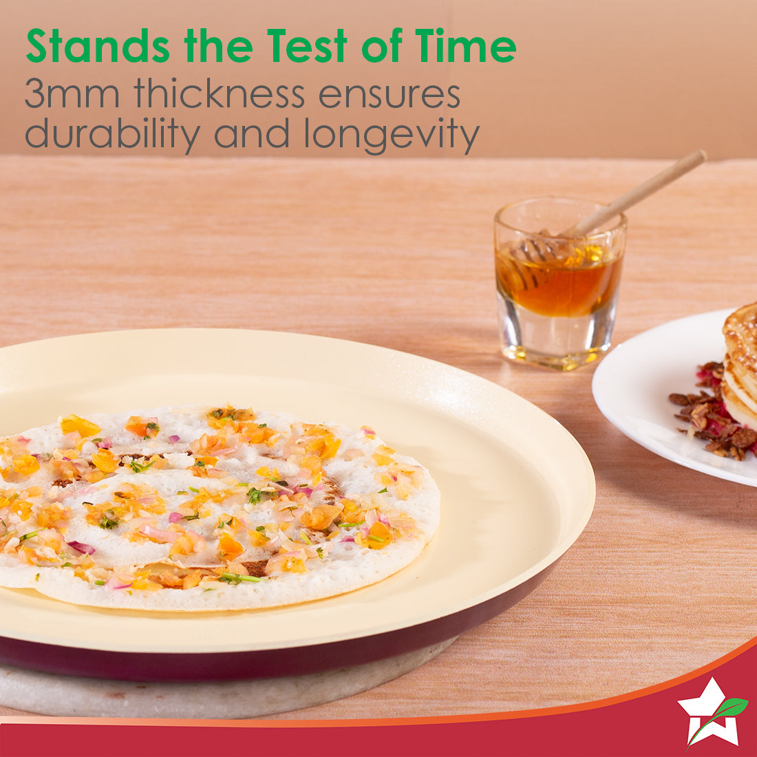 - The dosa tawa is 3mm thick, hence durable, long lasting and the ideal weight in your hand.