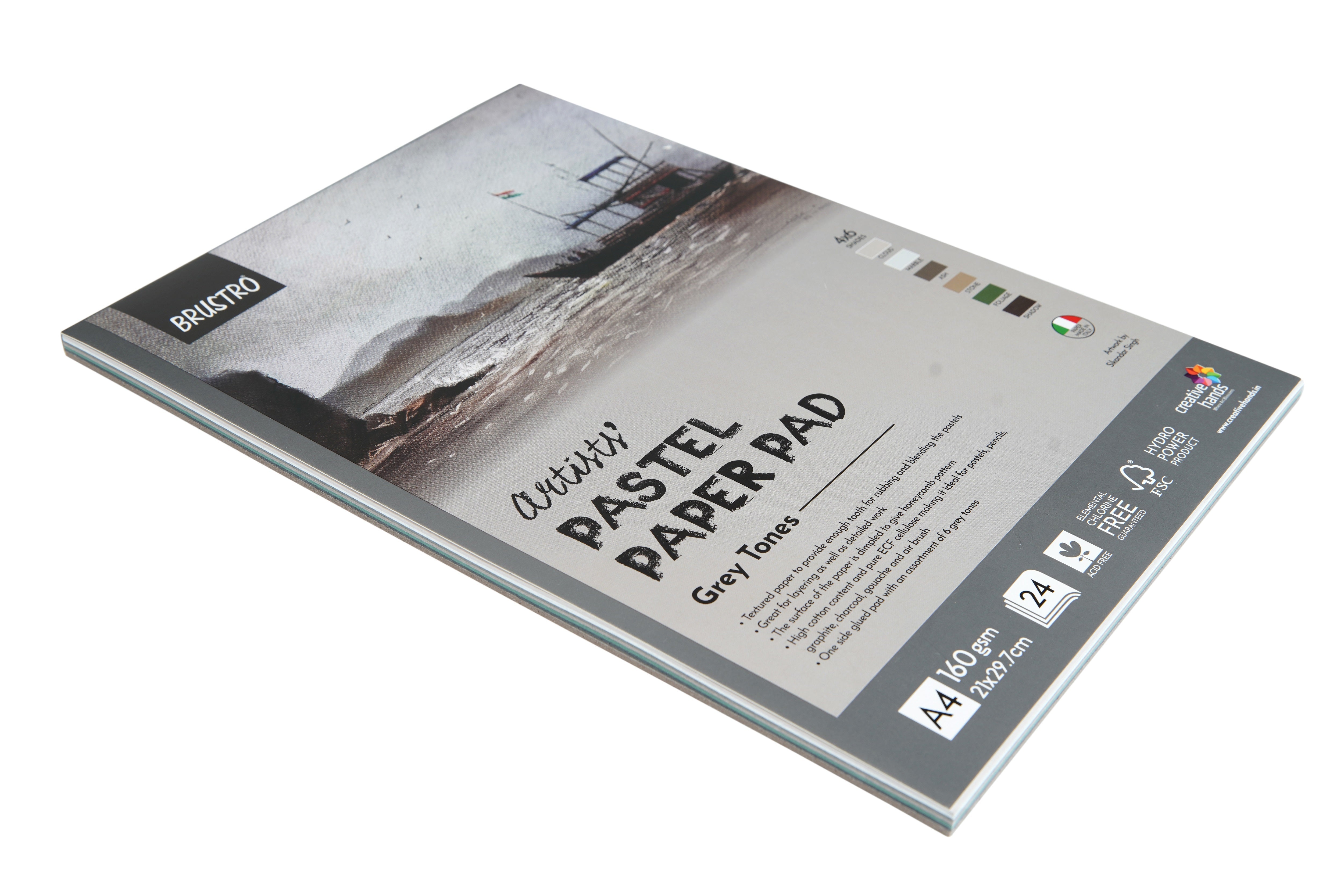 - One side glued pad with 4 each assortment of 6 grey tones (Cloud, Marble, Ash, Stone, Foliage & Shadow). Size- A4
