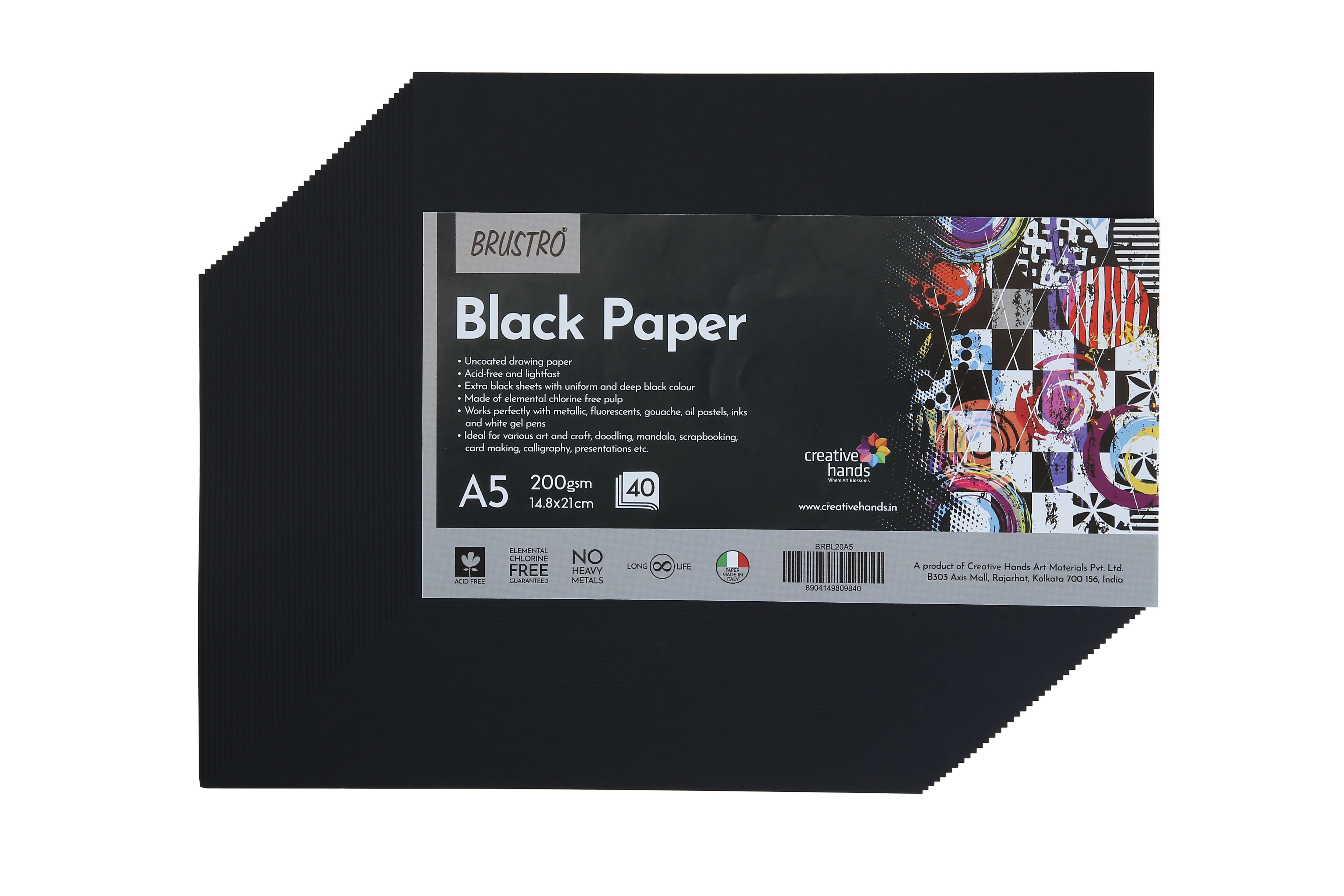 These Brustro Black Paper are Uncoated drawing paper. are Acid-free and lightfast black papers, Extra black sheets with uniform and deep black colour. Made of elemental chlorine free pulp. Works perfectly with metallic, fluorescents, gouache, oil pastels, inks and white gel pens. Ideal for various art and craft, doodling, mandala, scrapbooking, card making, calligraphy, presentations etc. Made in Italy,