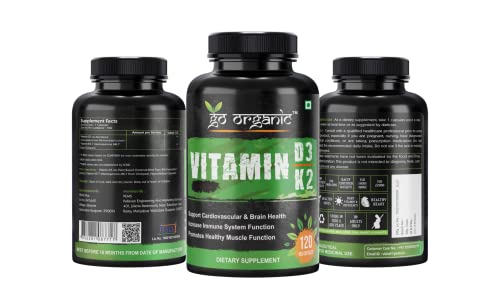 Go Organic Plant based organic, 120 Capsules | Vitamin D3 + K2 Capsules