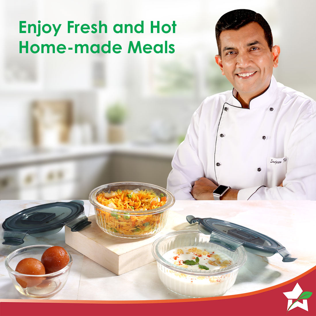 - Ideal Size:Â The glass container has been sized as per the needs of Indian food to hold just the right amount of dal, veggies, rice and curd for your meal.Â