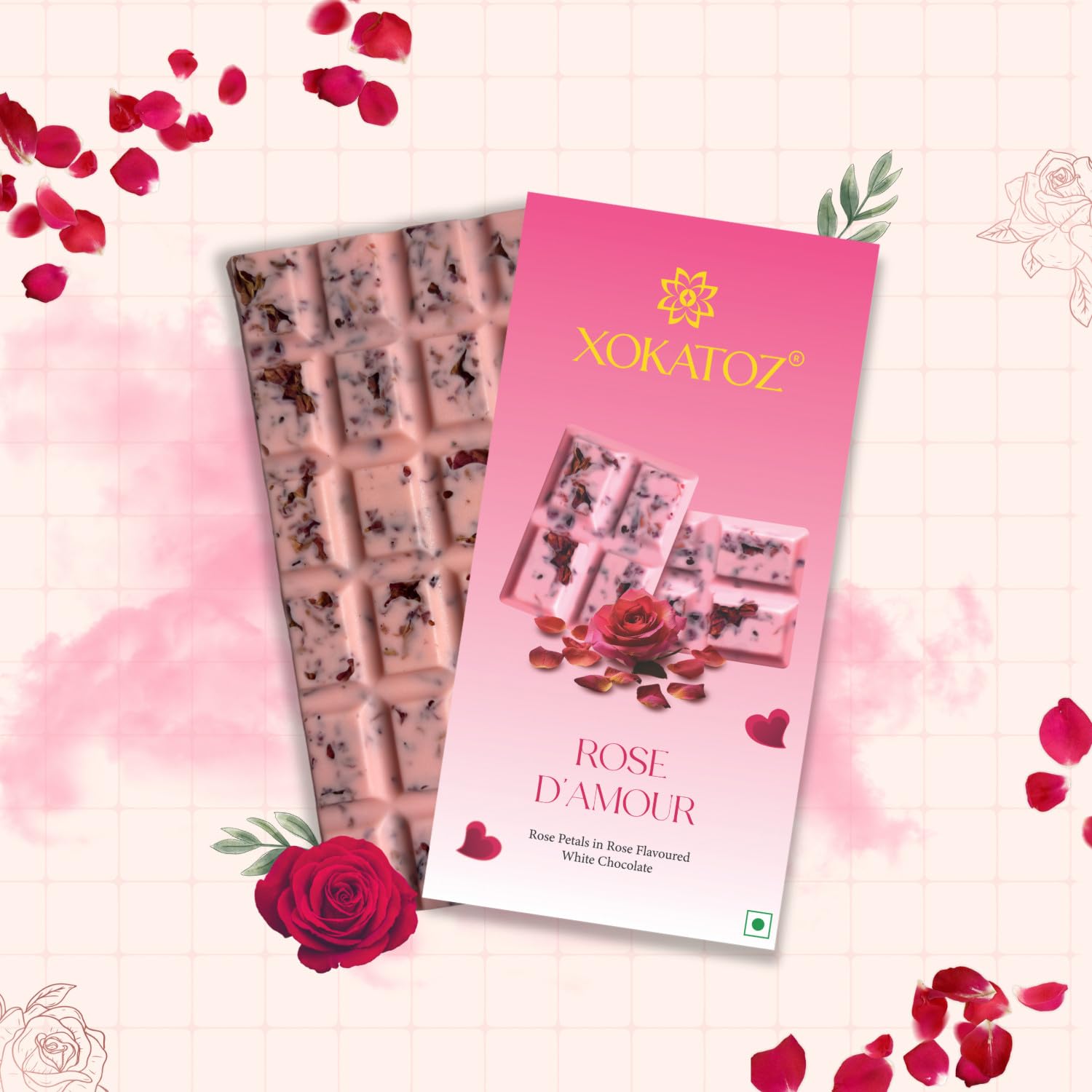 - Express your love with Xokatoz Rose D’Amour Chocolate: A luxurious blend of rose petals in velvety white chocolate resulting in floral notes blooming on your palate.