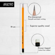 BRUSTRO 2HB Pencils | Pack of 12 | Strong Grip, Extra Dark with Eraser Tip, Pre-Sharpened, Smooth Handwriting, Drawing, Sketching, Mandala, Graphite, Ideal for Students and Adults, School, Office use