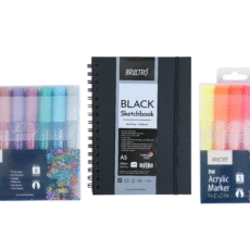 Brustro Acrylic (DIY) Marker Set of 8 (Metallic Shades) & Acrylic (DIY) Marker Set of 5(Neon Shades) with Black Sketchbook.