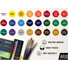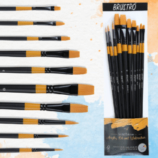 BRUSTRO Acrylic Paint Set of 24, Multicolour 12ml Tubes with Gold Taklon Brush Set of 10