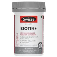 Swisse Biotin+ Boosts Keratin Levels, Reduce Hair Loss and Promote Regrowth with Nicotinamide (60 Tablets)