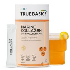 TrueBasics Marine Collagen With Clinically Researched Titagen Collagen, with Hyaluronic Acid, Biotin, Vitamin C & E, for Youthful Skin (15 Sachets, Orange)