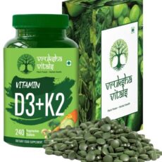 Vruksha Vitals Vit D3 & K2 100% RDA, 120 (+120 Extra)= 240 Tablets – For Adults & Kids – Plant based Vitamin D3 600 IU & Vitamin K2 as MK7 55 mcg, Vitamin D & Vit K Vegan Tablets/Capsules Supplement